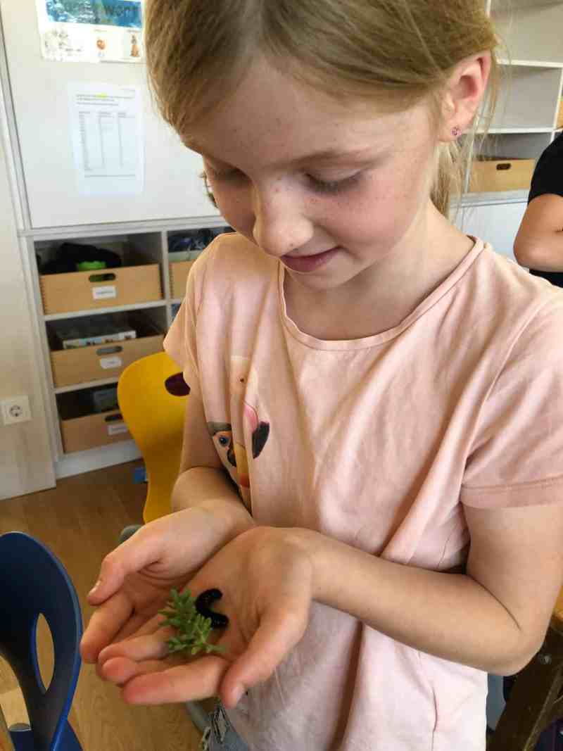 Die Kinder wussten bereits eine Menge über Schmetterlinge im Allgemeinen und konnten sogar zwischen Schmetterlingen und Motten unterscheiden. Otto brachte einige Apollo-Raupen und Schmetterlinge mit, die die Kinder sehen und anfassen konnten. Das war das Highlight für die Kinder, auch wenn die grünen Ausscheidungen der Raupen so manches „Iiiiiii“ verursachten. Am Ende konnten die Kinder mit Puzzles und Memorys zu verschiedenen Schmetterlingsarten spielen. Jedes Kind erhielt außerdem eine kleine Tüte mit Wildblumensamen, um im Garten oder auf dem Balkon ein Apollo- und Schmetterlingsparadies zu schaffen.